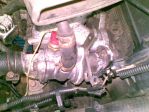 I've cut a "window on the intake manifold on the right side, where the water outlet was blocked, and i fabricate a piece with 2 flanges to mount the thermostat housing. The original port for thermostat is used now for feeding heater.